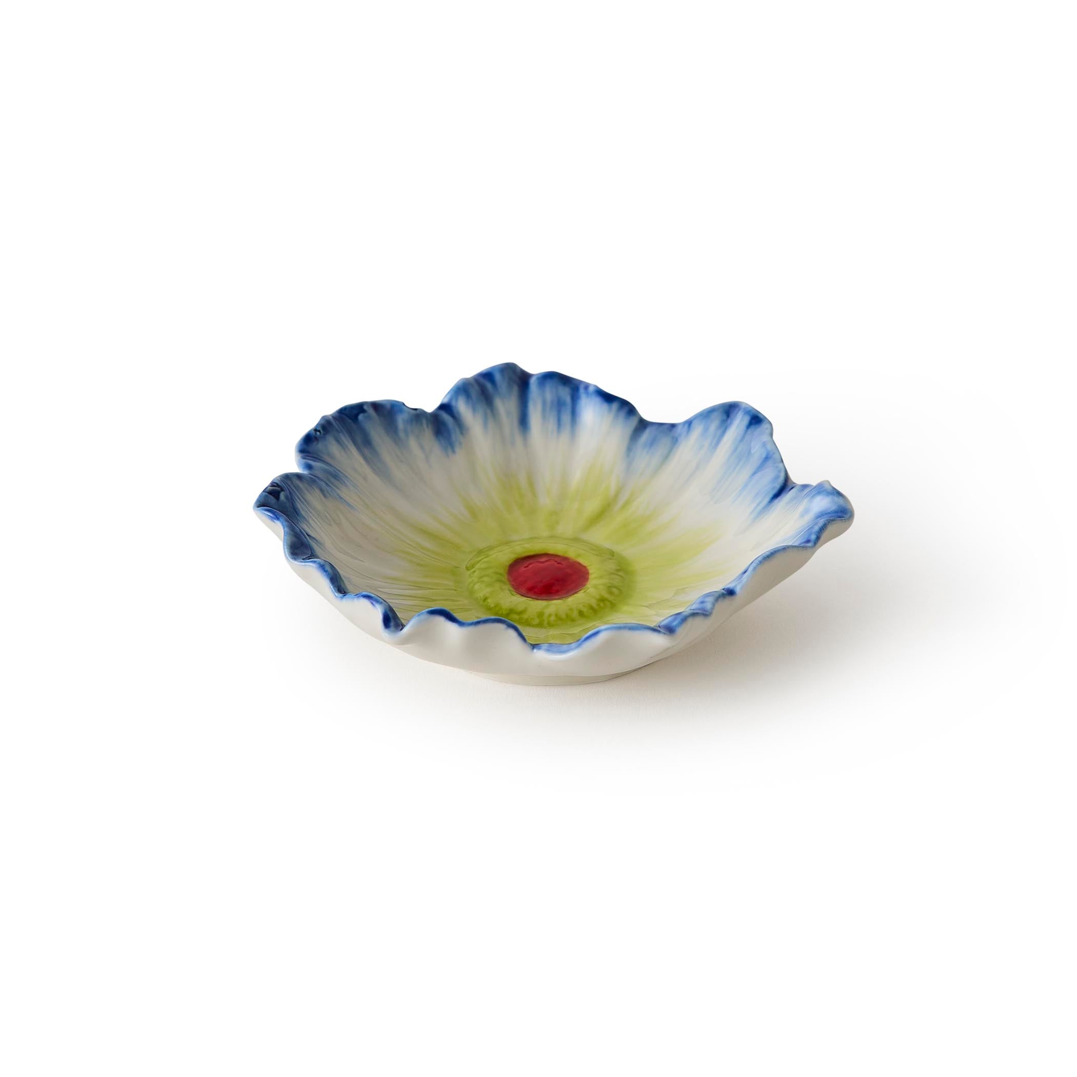 A pretty blue flower trinket dish that brings a pop of colour to your vanity or table. This hand-painted dish features an intricately embossed floral pattern that will brighten your table.