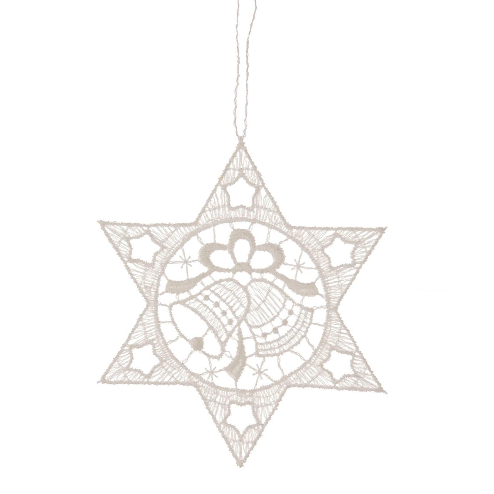 The world-renowned Plauen lace is also available as a tree ornament. It beautifully adorns the Christmas tree or can be used as a decoration on an Advent arrangement.